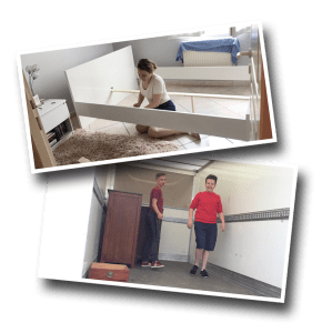 After spending two years in a furnished home, they will soon move to an un-furnished home and needed to reclaim a good deal of their furniture and household items. We were pulling together many of the last minute details for our departure and the boys were already done school which meant that they could assist the Brochus with some “heavy lifting” so to speak. Help they did, and while they were helping move the Brochus out, we also had to move a few new things in (and assemble them too)… like Sophie’s bed for example.