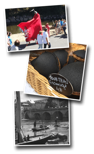 River punters gathered along the edge of the Vienne and waited for the chance to take festival-goers for a ride… old school. These historic river boats are somewhat of a cross between row-boats and the gondolas of Venice. When not navigating the river channel, they demonstrated skills as varied as knot-tying to singing the old river songs of yesteryear.