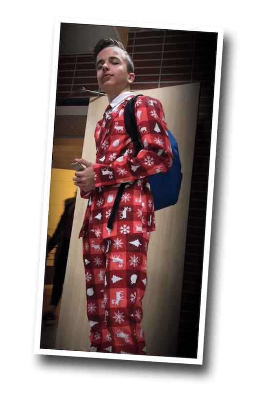 As you can imagine he got lots of comments – even from his school head-mistress – and they used a picture of him to promote the school’s “red & white” school spirit day, coming up this week.
