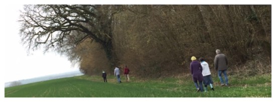 - We went on a walk through the countryside… pas manicured yards and wild tree-lined fields. Just take a look at the huge oak tree in our path, below… it was even bigger than it looks on the photo. A good walk out of doors is great therapy and facilitates great conversation! Even better when it’s followed up by hot tea, chocolate cake, apple clafoutis and homemade palmiers.