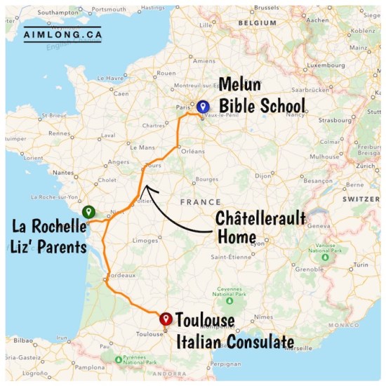 The reason: it’s the Italian consulate that looks after our part of France and we had to (a) renew Liz’s & the kids’ Italian passports and (b) I was able to apply for mine – first time.