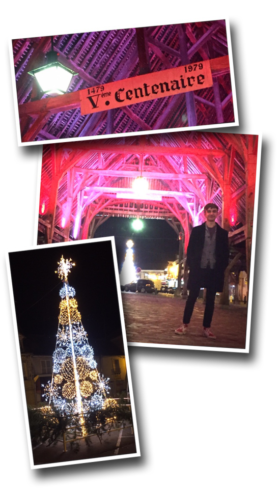 On our way up, we drove through the little town of Milly-la-Forêt and their 500 year-old post & beam covered market place was lit up for Christmas.