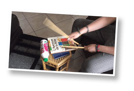 Timo: This guy…. Remember how I said he’d been missing the drum set at church? Well… he decided to get creative at home, so during Sunday morning worship, the latest iteration of the drum kit included an empty Yop bottle, a hardcover book and a spiral-bound notebook. You’d be surprised… it works!