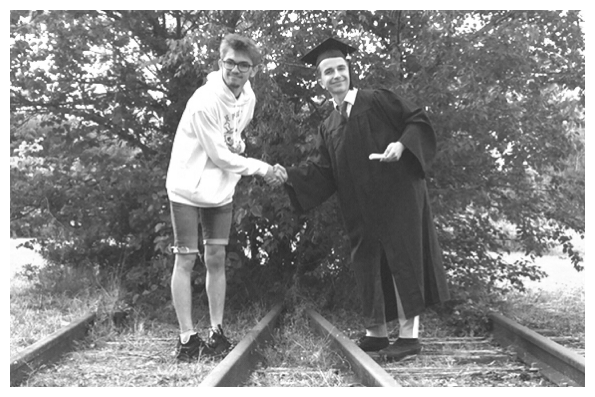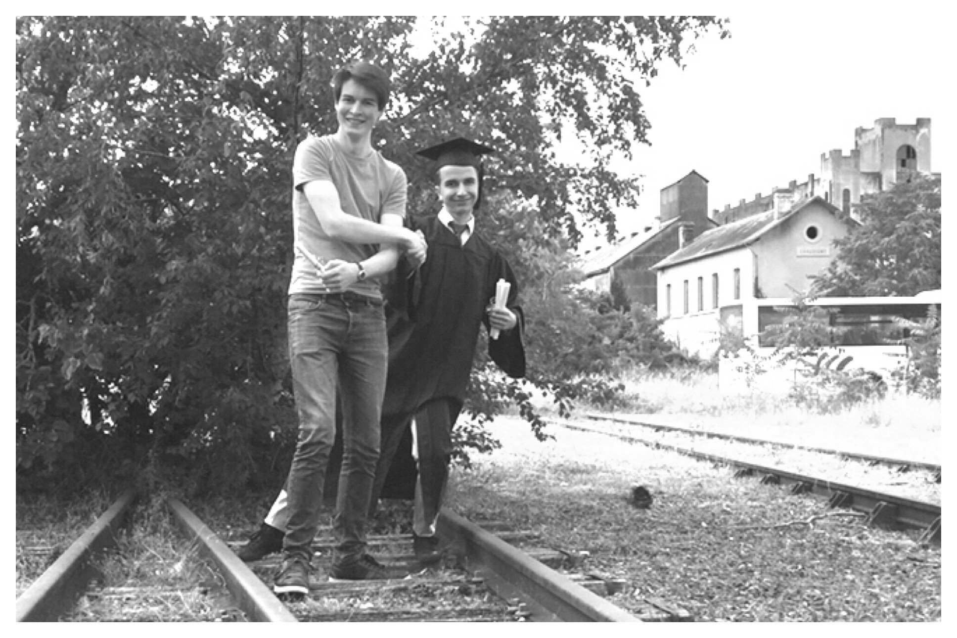 After the diploma ceremony… they sat down on the tracks (abandoned) for some gift-giving.