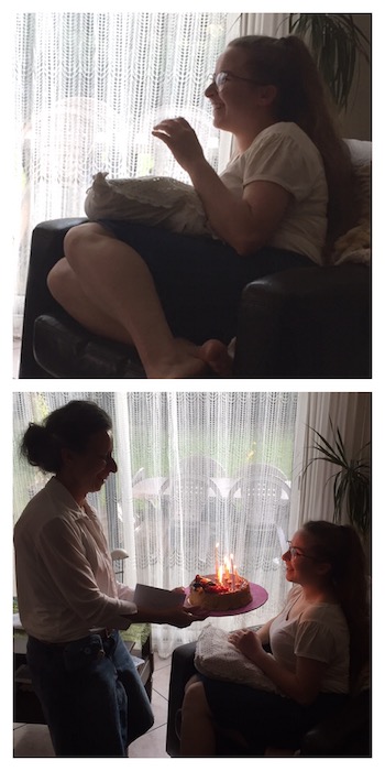 Cake, her favourite meal, a basket of goodies and some global online chats with friends made for a great day for her.