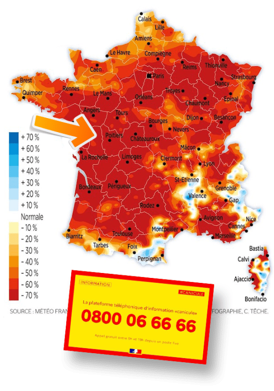 While the temperatures were fairly reasonable for most of the month, this image reflects the rainfall deficit for the month. Regions in the dark red colour (we’re there) saw 70% less rainfall than normal. We received between 5-6mm (1/4″) of rain over the entire month. As temperatures soar to the high 30s this week… the ground is just getting harder and harder.
