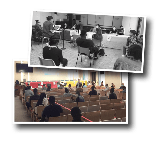This is what quizzing looked like in the context of COVID. While organizers held the quarter finals by ZOOM, they wanted to have the final matches in person. Safety restrictions meant that ONLY the teams could be present, no spectators that didn’t have a specific role. Since we did, we were all able to watch Dominic quiz.