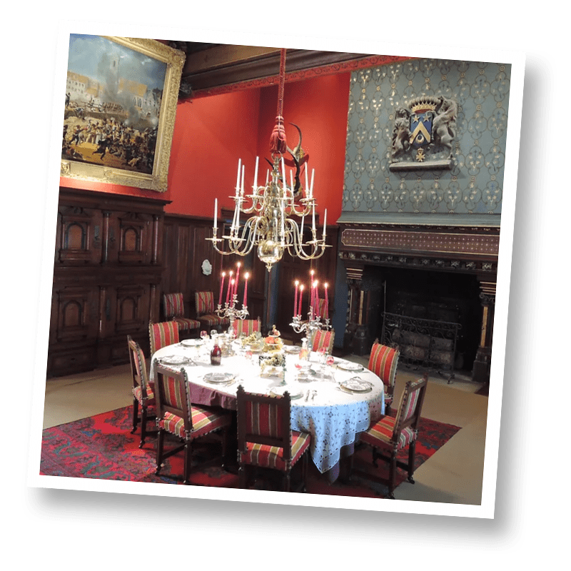 As I mentioned above, I couldn’t take photos, because it’s a private residence, filled with personal items, however this photo of the dining room comes from the castle’s website, and gives you a sense of the interior.