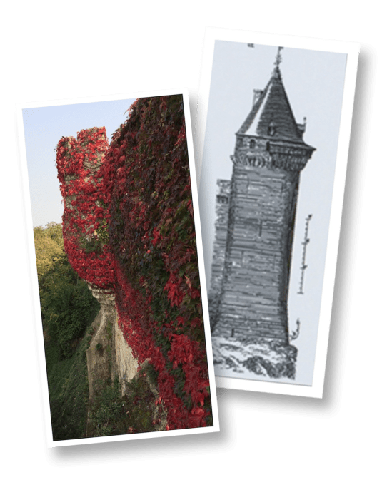 You see here what they would’ve looked like originally and what remains of one of the towers overlooking the Thouet.