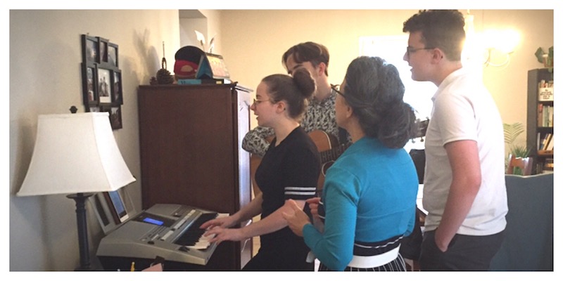 As you can see below, church at home starts out a lot differently that ‘church-church’. Rather than finding our ‘favourite pew’ we gather ’round the keyboard (sure missing the piano that we left in Canada) and sang together in close proximity (no need to social distance HERE!).
