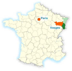 This cheese derives its name from the small Alsatian town where it was originally produced: Munster, in the Haut Rhin department (dark green on the map), part of the Alsace region (dark + light green together). This area is familiar, at least in name, to many North Americans since it figured into many a history lesson, having changed hands between Germany and France several times. - Region: Vosges
