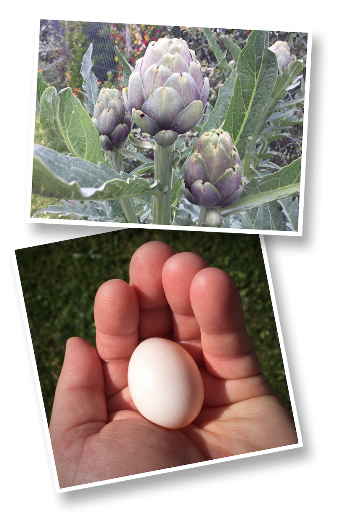 One of the nice things about the cooler weather is that it’s put a damper on the ant population, meaning that our artichokes had a fighting chance this year. Last year, the combination of aphids and ants did in the fruiting stems before they could produce. I’m not particularly a fan, but it’s something from Liz’s childhood, which is why they’ve found a home in the garden.