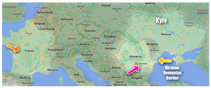 Soph is a long way from home right now, and is about 400km (250mi) from the border with Ukraine. She is quite safe at that distance and Romania is a NATO country, but still… as you can see from the map, she is much closer to the conflict than she is close to home. What’s more, while she is far from Kyiv (about a 12h drive), it’s well known that Russia has aspirations of cutting Ukraine off from the Black Sea, extending it’s territorial reach along the entire southern coast of Ukraine. I can’t see that happening, though, based on how things are going.