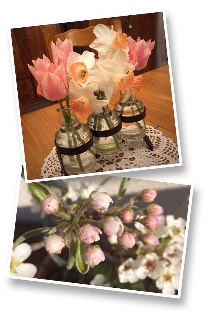 You know, by now, that I love the garden and I love to bring a bit of the garden indoors on just about any day when things are growing or blooming, but apple blossoms even a bit moreso.
