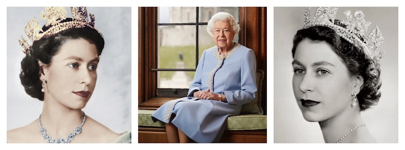 From the time I entered elementary school, I remember there always being a framed picture of Queen Elizabeth at the front of the class. If memory serves me correctly it was similar to, if not specifically, the left-most picture of the three pictures below.