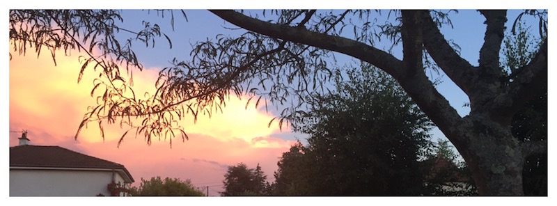 Before I get to today’s source of gratitude, let me show you the picture I took last night, of the setting sun lighting up the clouds…
