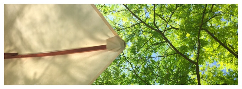 They got a second hive this Spring, so I grew another colony for them, with which to fill the boxes, and today was delivery day. After getting them all nicely installed, we sat around their patio table, itself under a parasol, under the towering Albizia tree in their courtyard.