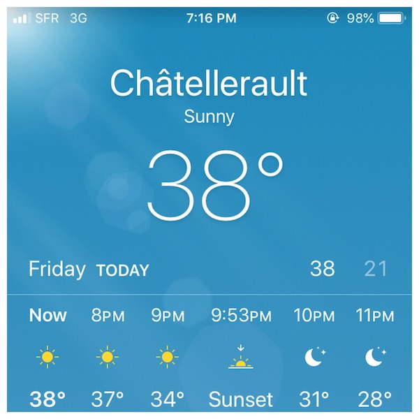 We’re sweltering through a heat wave and it was 38˚C (about 100˚F) shortly after 7pm.
