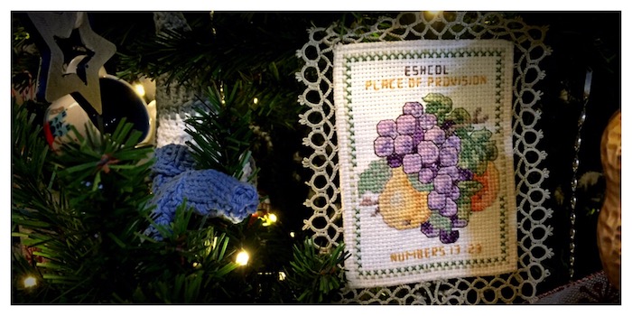 This piece was originally a little wall hanging, but it came across the ocean with the Christmas stuff… so now it adorns our tree.