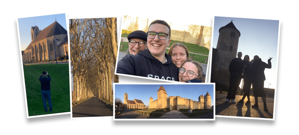 Bible School Saturdays used to mean driving up Friday, teaching, then back on Saturday. Since I stepped back from that last year though, Dominic has begun as a student and his work schedule means that he frequently works late on Fridays. By the time he’s done, there are no trains, and he’d be too tired to drive himself (before a day of classes). As a result, I drive him and we leave around 4:00am (in time for his 7:30am start time). This time though, I had extra company: Sophie, Timo & Melanie Majdling, from Bordeaux.