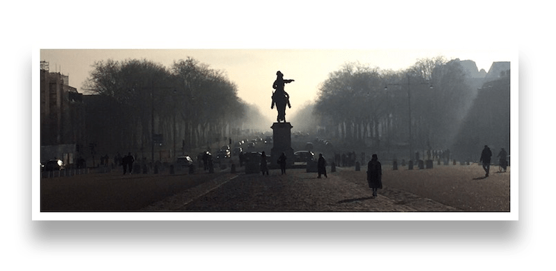 Quite a picture really… so simple in its composition, but so powerful at the same time… the softer edges of the tree-lined boulevard, marked with the clear dominance of the equestrian statue of the Sun King. I’m sure he’d be proud of how it turned out.