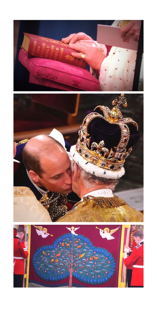 - As a handcrafter, I was in awe of the hand-stitched screen that protected the King from sight at the moment of his anointing.