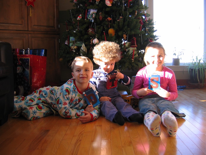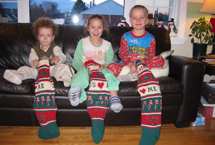 Today, there are two memories that I want to share with you, and the first, involves these massive Christmas stockings that the kids are straddling.