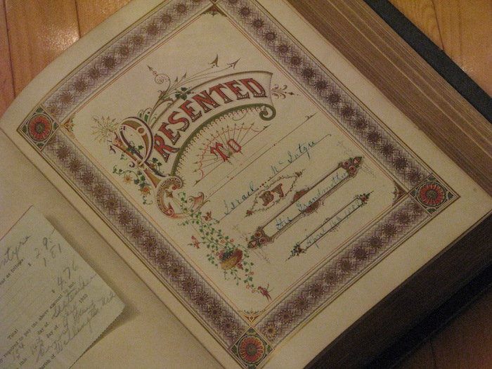 This remarkable Bible was given to a long-gone (& somewhat distant) member of our family, Israel McIntyre, by his grandmother, on April 16th, 1883.