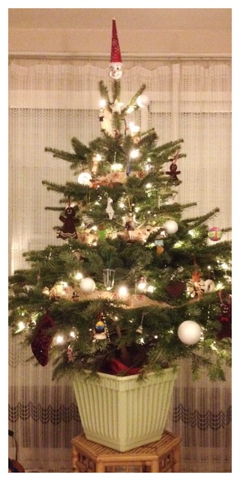 The house was light on Christmas decorations because, remember, we initially only expected to be here for 1.5-2 years, so we hadn’t brought much with us, and we hadn’t had time to accumulate very much. Our tree was a short one, but is was a real tree and it was attached to a rootball, so, in theory, it could be planted outside after the holiday. There must be a trick I never got, because we’ve had a couple and I was never able to get them to live.