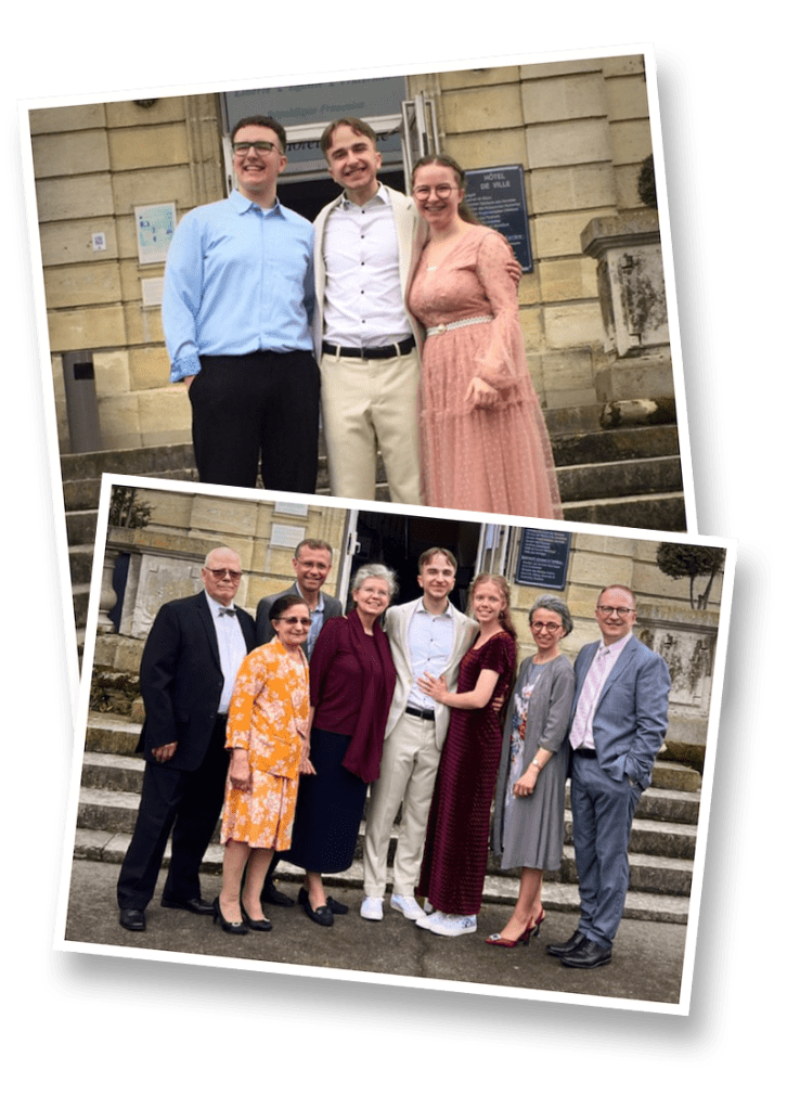 Melanie’s cousin was there from Australia, one of Dominic’s groomsmen was there from the Netherlands, Liz’s family was there from Belgium, two other MKs were there from Venezuela and there were members of the bride’s family from around north-eastern France, as well as a handful of Dominic and Sophie’s school friends.