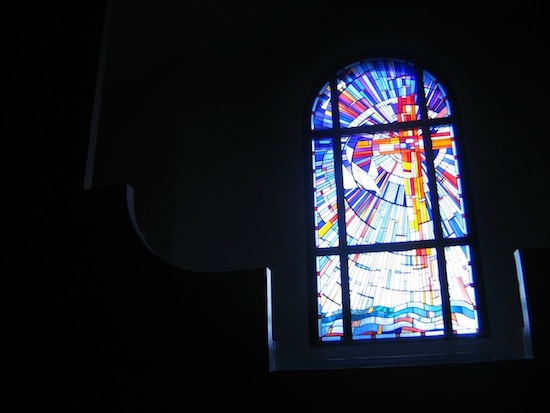 Melun October 24, 2013 550 × 413 The church in Melun The stained-glass window above the baptistry in the headquarters church, Melun.