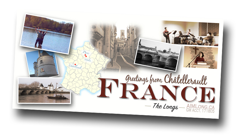 (Note: we haven’t sent out much print communication since arriving in France… with the exception of this personalized note card.)
