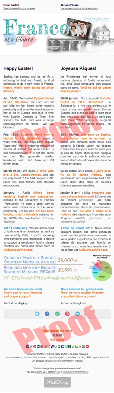 Note: It looks long, but it’s because I publish English and French in the same email, actual communication in each language is succinct.