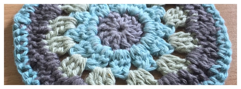 So… in the meantime, enjoy pictures of three good things… (1) a strawberry growing in the greenhouse (2) a pear tree in blossom in the yard and (3) home-made crocheted coasters to set coffee on… small comforts!